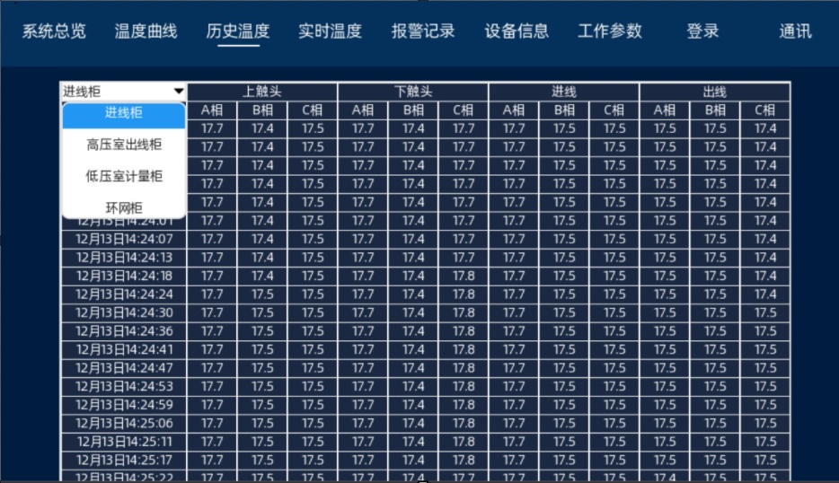 系統(tǒng)配備標(biāo)準(zhǔn)通訊接口,可聯(lián)網(wǎng)運(yùn)行。通過上位機(jī)軟件,可記錄高壓設(shè)備實(shí)時(shí)運(yùn)行溫度的數(shù)據(jù)。為高壓設(shè)備的維修提供累積數(shù)據(jù),實(shí)現(xiàn)